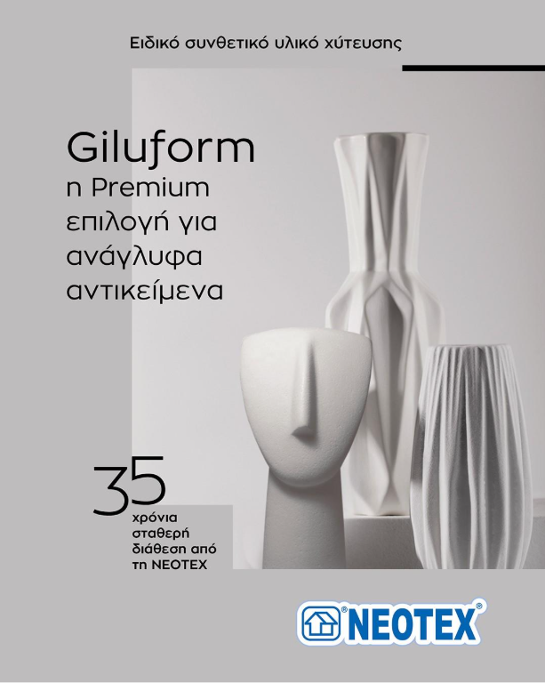Με τη συμπλήρωση 35 χρόνων εισαγωγής και συνεχούς διάθεσης στην ελληνική αγορά του κορυφαίας ποιότητας καλλιτεχνικού υλικού χύτευσης Giluform, η ΝΕΟΤΕΧ Α.Β.Ε.Ε. θα ήθελε να εκφράσει τις θερμές της ευχαριστίες προς όλους εσάς που το εμπιστεύεστε και το χρησιμοποιείτε στα δημιουργικά σας έργα όλα αυτά τα χρόνια.